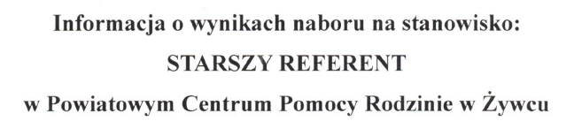 Protokół ze wstępnej selekcji kandydatów i analizy dokumentów aplikacyjnych z przeprowadzonego w dniu 8 lutego 2024r. naboru na stanowisko REFERENTA w Powiatowym Centrum Pomocy Rodzinie w Żywcu. Protokół dotyczy stanowiska Referent Protokół ze wstępnej selekcji kandydatów i analizy dokumentów aplikacyjnych z przeprowadzonego w dniu 8 lutego 2024r. naboru na stanowisko STARSZEGO REFERENTA w Powiatowym Centrum…