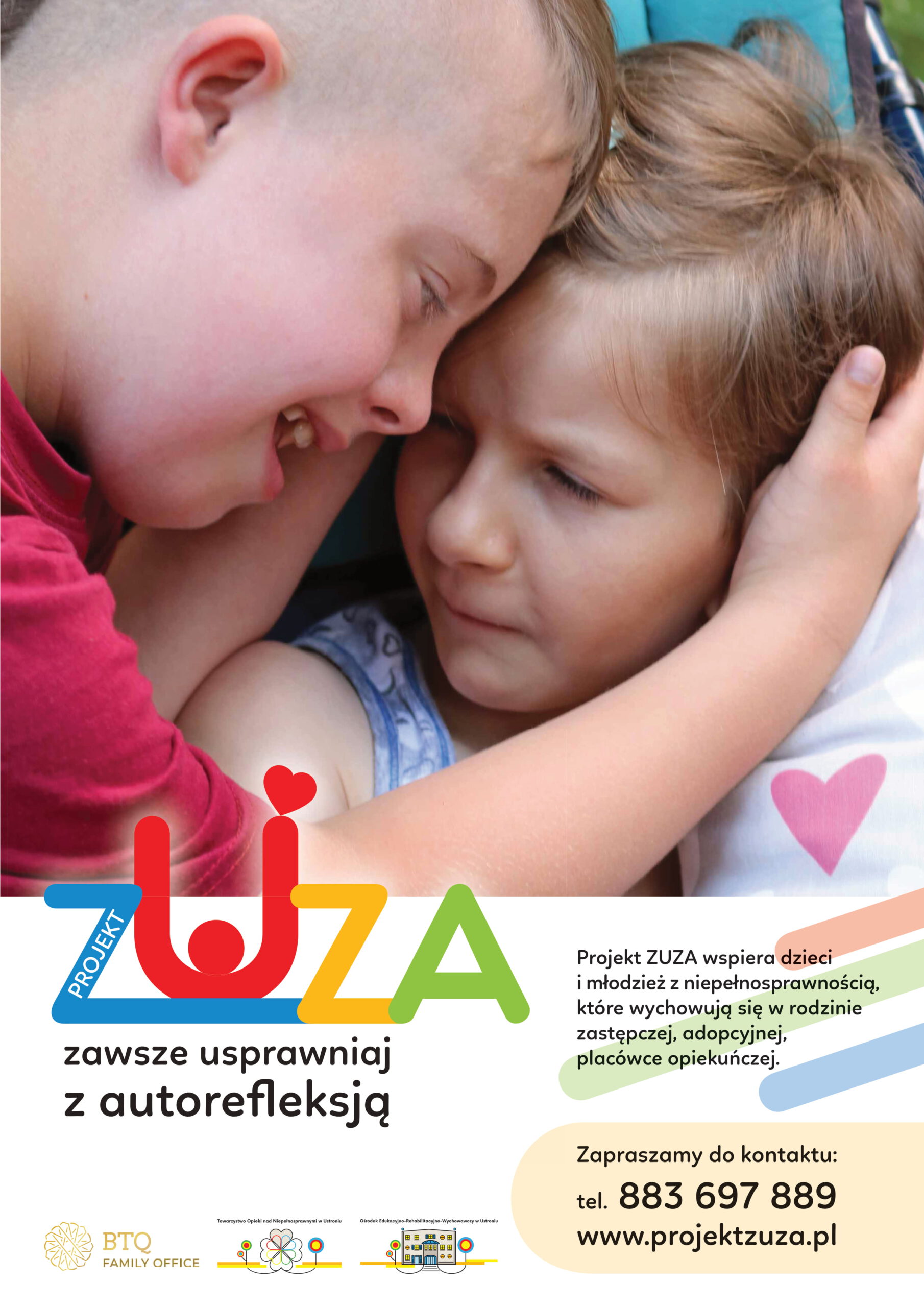 W imieniu Towarzystwa Opieki nad Niepełnosprawnymi w Ustroniu i Funduszu Rodzinnego BTQ informujemy o realizowanym pomocowym Projekcie Zuza. Projekt dedykowany jest do dzieci z niepełnosprawnością, które wychowują się w rodzinach zastępczych, adopcyjnych i placówkach opiekuńczych.